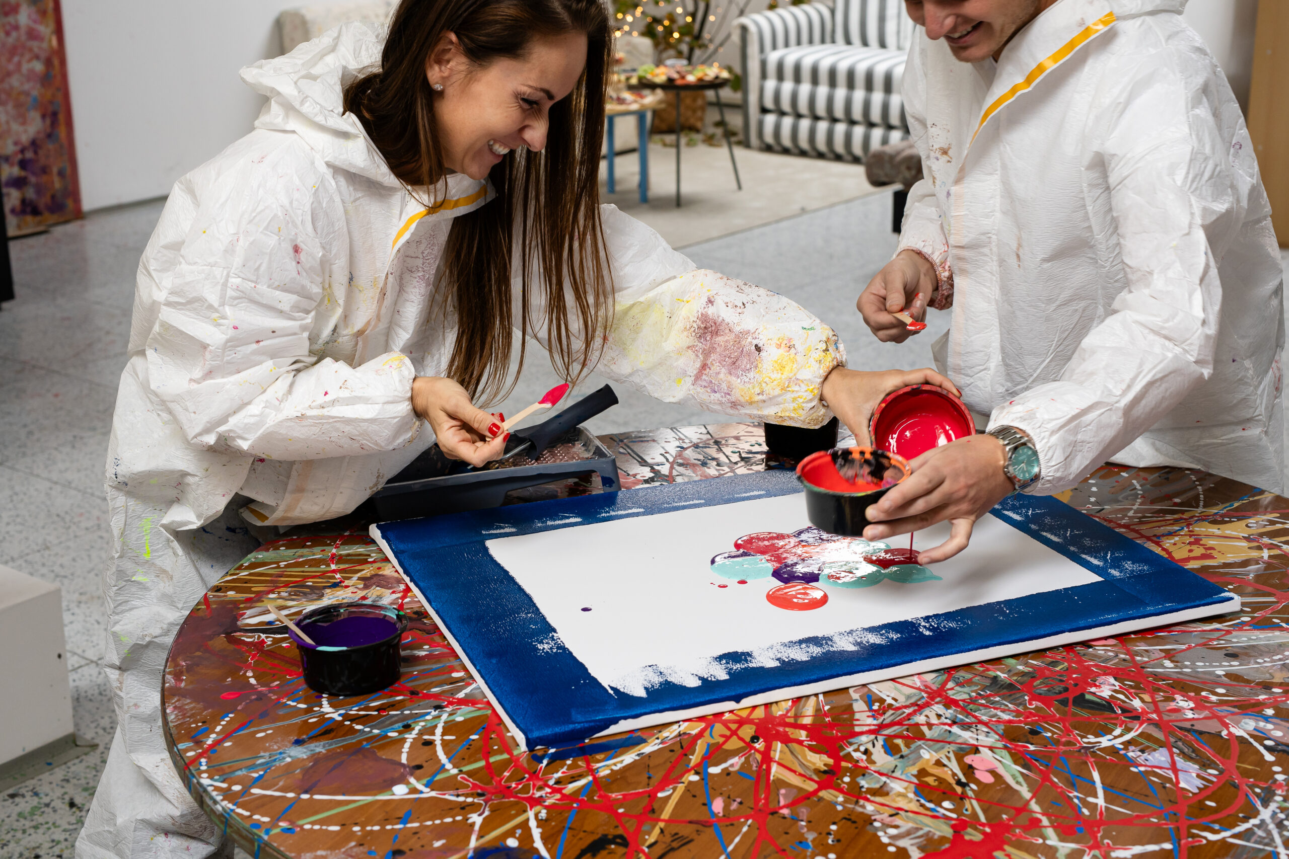 🖌️ Maluje se akrylem, kombinovanými technikami, texturami, špachtlí, fénem… nebo si zahraješ šipky s barevnými balónky.